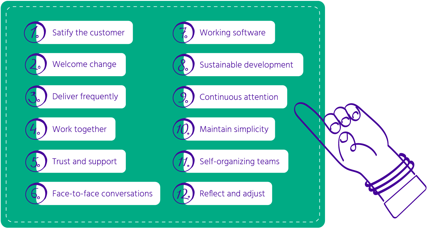 <figure><img src="https://1103902291-files.gitbook.io/~/files/v0/b/gitbook-x-prod.appspot.com/o/spaces%2FoJY21WCZ4Bv17lheJcgD%2Fuploads%2Fgit-blob-6d8228adbc28e85c1b12204e6318374c2c27253c%2FAgileXR_GitBook_Visual%202%402x.png?alt=media" alt=""><figcaption><p>De 12 agile principes</p></figcaption></figure>