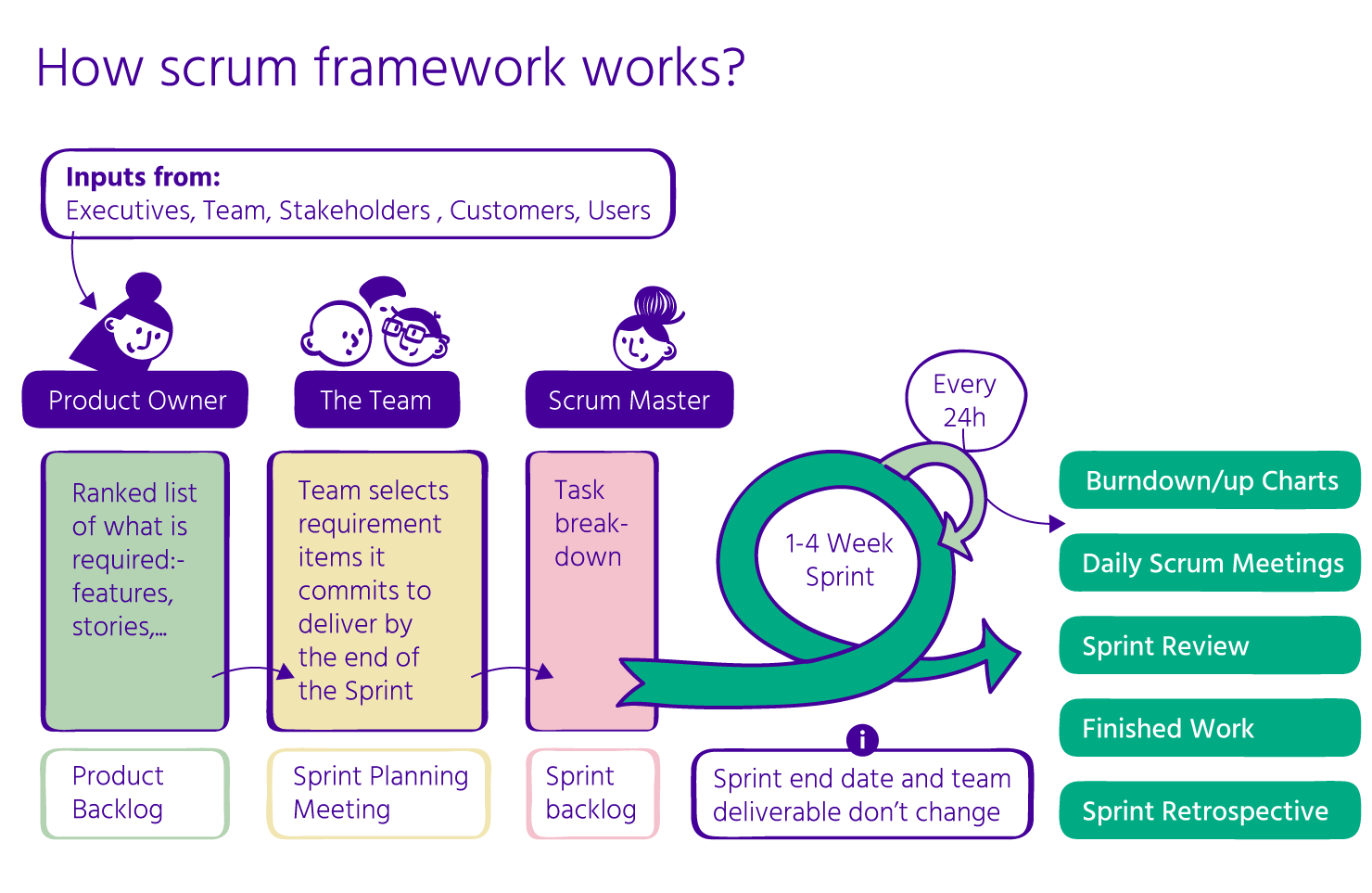 <figure><img src="https://1103902291-files.gitbook.io/~/files/v0/b/gitbook-x-prod.appspot.com/o/spaces%2FoJY21WCZ4Bv17lheJcgD%2Fuploads%2Fgit-blob-944a769da4777d0a1eb59b497a1cef36d989d7a4%2FAgileXR_GitBook_Visual%205%402x.png?alt=media" alt=""><figcaption><p><a href="https://www.altexsoft.com/whitepapers/agile-project-management-best-practices-and-methodologies/">Hoe het Scrum framework werkt</a></p></figcaption></figure>