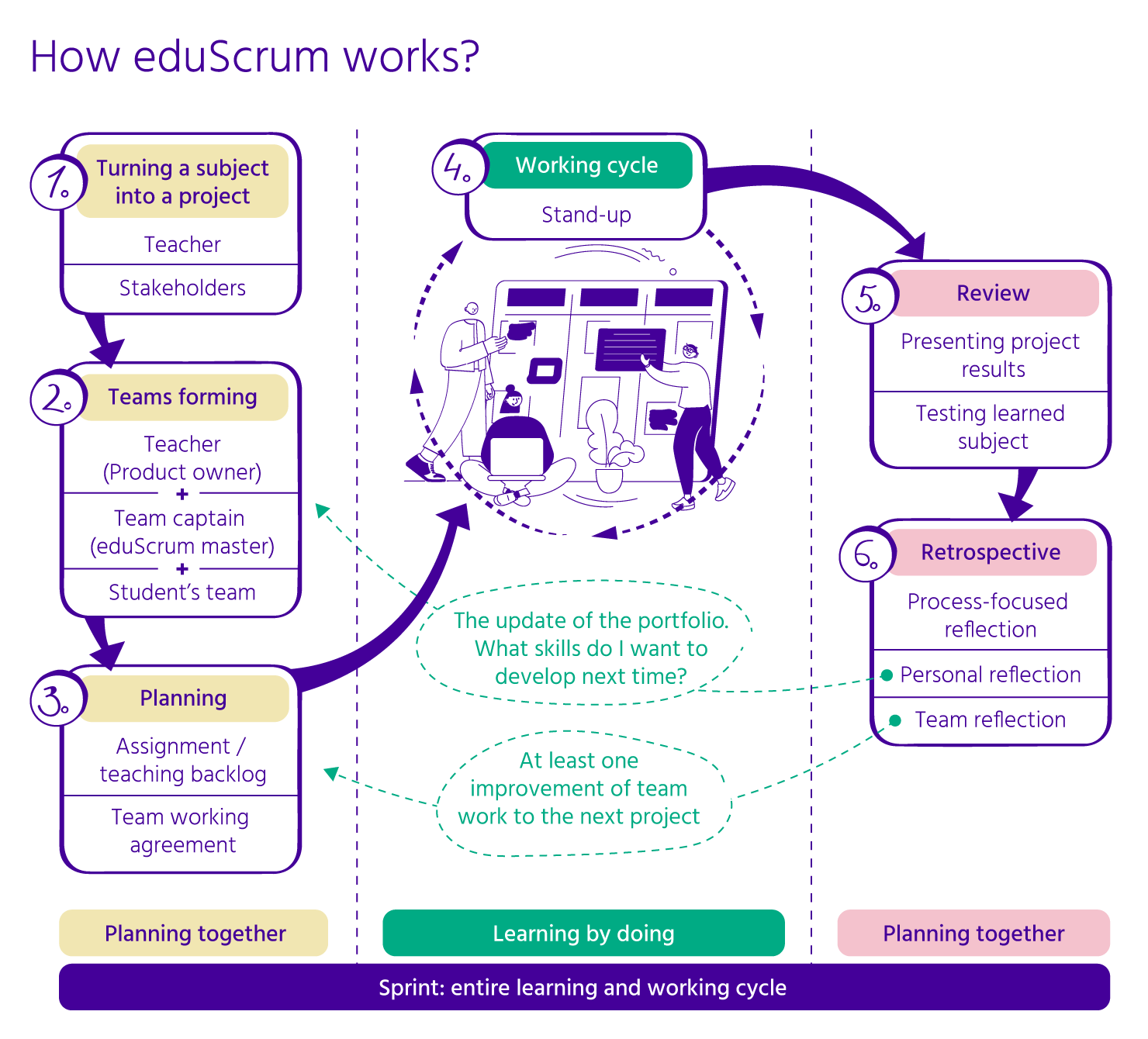 <figure><img src="https://1103902291-files.gitbook.io/~/files/v0/b/gitbook-x-prod.appspot.com/o/spaces%2FoJY21WCZ4Bv17lheJcgD%2Fuploads%2Fgit-blob-840bba12798b57e21ac40becef73e0099b4f938c%2FAgileXR_GitBook_Visual%207%402x.png?alt=media" alt=""><figcaption><p><a href="https://eduscrum.org/how-eduscrum-works/">eduScrum</a></p></figcaption></figure>